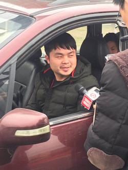 圖為臺(tái)州高速公路支付寶移動(dòng)支付通行費(fèi)第一輛車(chē)的車(chē)主接受媒體采訪