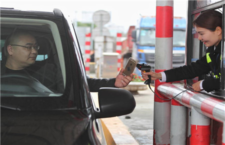“移動(dòng)支付也給我們工作帶來(lái)很多方便,省了核對(duì)現(xiàn)金數(shù)額、辨別錢(qián)幣真?zhèn)巍⒄伊愕墓ぷ髁浚僮鲿r(shí)間縮短,車(chē)輛通行速度自然也快了很多。”當(dāng)班收費(fèi)班長(zhǎng)馬德偵介紹,而且付費(fèi)掃碼器的有效距離能夠達(dá)到1.5米,司乘人員坐在車(chē)內(nèi)就能輕松完成掃碼支付,既方便又快捷。“對(duì)于較大的貨車(chē),我們也可以使用手動(dòng)掃描儀進(jìn)行操作。”