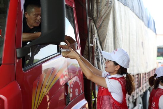 一杯杯清涼的飲品,幾句簡(jiǎn)短而溫馨的交流,拉進(jìn)了志愿者們與司乘人員之間的距離,司乘人員的好評(píng)將整個(gè)活動(dòng)現(xiàn)場(chǎng)推向高潮。