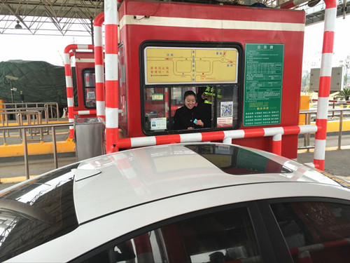圖為收費員熱情服務(wù)過往司乘人員 一個負責將車輛引到切換成人工的ETC車道,一個負責將限行的大客和危化品車輛引出內(nèi)廣場,一個維持秩序,因是雨雪剛放晴的天氣,一小會兒下來,工作人員的臉頰就已凍成“高原紅”,他們只是搓搓手,跺跺腳,不停穿梭于車流間。 本次春運車流大多是往西北方向流動,這讓臺州南主站僅有的兩個入口車道(其中一個為ETC車道)顯得尤為捉襟見肘。而且入口車道系統(tǒng)存在缺陷,一些種類車輛無法抓,需要手工輸全牌,導(dǎo)致通行速度緩慢。受雨雪天氣的影響,大客和危化品車被限行,也造成秩序的混亂和車輛的擁堵。然而就是在諸多困難面前,臺州南收費所全體人員直面困難,忙而不亂,創(chuàng)下一個車道一個班次發(fā)出1900多張通行卡的新記錄。 服務(wù)是這個嚴寒里的一把火,本著“熱情、高效”的服務(wù)宗旨,所有員工以親切的笑容、貼心的話語溫暖每一位過往的司乘人員,讓回家的路不再遙遠。 夏蓮萍