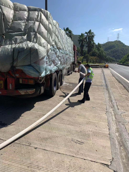 圖為消滅隱患現(xiàn)場(chǎng) 同時(shí),中控員密切關(guān)注車輛動(dòng)向,13:37,中控員在隧道南廣場(chǎng)發(fā)現(xiàn)該車,巡邏車立即奔赴現(xiàn)場(chǎng),該車后輪胎剎車位置在冒煙,司機(jī)正用礦泉水澆輪胎,隊(duì)員們見(jiàn)狀,火速上前把消防栓打開(kāi),接上消防水帶,交與該車司機(jī),托著消防水帶,對(duì)準(zhǔn)輪胎接連猛射,冷卻剎車片,輪胎終于沒(méi)有冒煙,一場(chǎng)隱患被隊(duì)員消除了。 據(jù)悉,該輛半掛車因輪胎爆炸,引起冒煙,司機(jī)卻想著從下一個(gè)高速出口,幸好隊(duì)員們監(jiān)控及時(shí),出警迅速,施救到位,把隱患扼殺在搖籃里,沒(méi)在隧道內(nèi)發(fā)生火災(zāi),不然后果將無(wú)法想象。 現(xiàn)場(chǎng),隊(duì)長(zhǎng)告知司機(jī),萬(wàn)一車輛發(fā)生火災(zāi),請(qǐng)把車停在隧道外,若在隧道內(nèi)發(fā)現(xiàn)車輛起火,請(qǐng)加速駛往隧道口,盡快駛離隧道,避免造成人員傷亡。 陳智慧