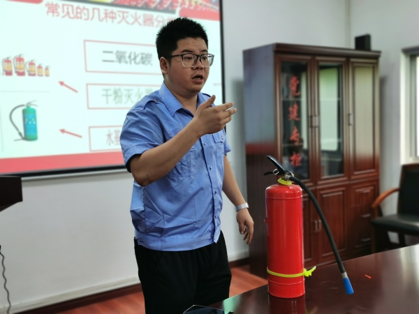 圖為楊金德示范滅火器操作方法 基于隧道所工作場所配備的二氧化碳和水基滅火器,楊金德再次示范了滅火器的操作方法,又介紹了水基本滅火器的工作原理,它在噴射后,成水霧狀,瞬間蒸發(fā)火場大量的熱量,迅速降低火場溫度,隔離氧氣,從而達(dá)到快速滅火的目的。 培訓(xùn)課中,一則則鮮活的案例警示大家,火災(zāi)之患不容忽視,安全生產(chǎn)要做到“防災(zāi)結(jié)合,預(yù)防為主”,火災(zāi)的初期是最佳救援時機(jī),家里、車上、單位都應(yīng)配備滅火器及其他滅火設(shè)備,而且還要會使用。不要讓屏幕上的悲劇多次重演,人人要時刻敲響安全警鐘, 陳智慧