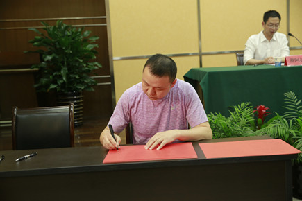 圖為公司黨委副書記、總經(jīng)理張建平與部門(子公司)負(fù)責(zé)人簽訂《黨風(fēng)廉政建設(shè)責(zé)任書》