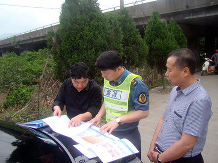 圖為公司安全總監(jiān)項同富與高速路政人員在現(xiàn)場討論整治方案 之前,高速路政大隊通過巡查,發(fā)現(xiàn)公司部分高速橋下存在較多堆放雜物、傾倒垃圾等現(xiàn)象,便提出了在橋下安裝禁令標牌的初步方案,方案包括告示牌設(shè)計內(nèi)容和具體安裝位置。 自接到該大隊的初步整改方案通知后,公司積極配合,迅速召集相關(guān)部門開展行動,再次檢查有問題的部位,并根據(jù)檢查情況細化整改方案,以及具體落實禁令標牌安裝形式、位置、尺寸等事宜,以更合理、科學地解決問題。 陳科
