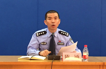 圖為臺州市公安局交通警察局副局長陳涌解答記者疑問