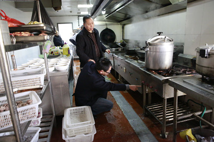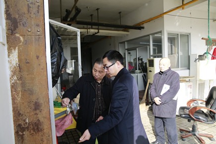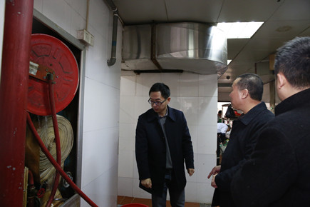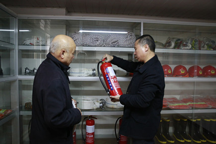 鑒于天臺縣足馨堂足浴中心2月5日發生的重大火災事故,2月6日一早,公司副總經理董阿林即刻組織安保部、辦公室相關人員對大樓進行消防安全大檢查。 “你們要多注意用電安全,及時清理生活區內的易燃物品至倉庫?!倍⒘衷跈z查五樓食堂區域時對工作人員指出。