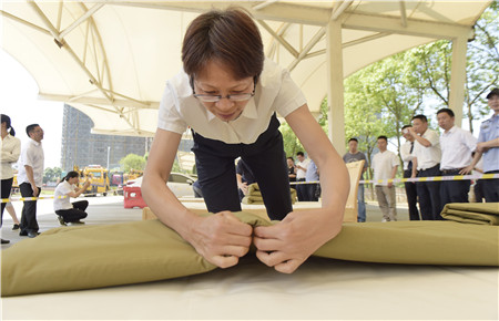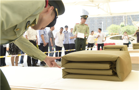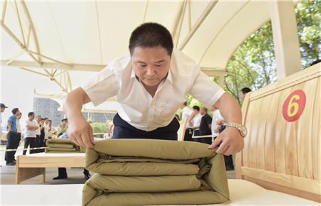 圖為選手們認(rèn)真疊被