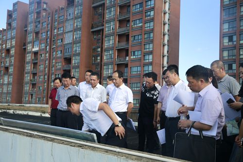 圖為臺州市副市長張加波實地察看海門港埠碼頭與新港區規劃建設用地 烈日下,調研組分別實地察看了海門港埠碼頭與新港區規劃建設用地。結合海門港埠總公司現狀用地區域圖及新碼頭選址方案圖展板,羅小將詳細介紹了港區碼頭目前區域現狀及新港區選址規劃設想方案,提出了港區剩余土地利用、建設項目規劃許可、新港區建設用地征遷安置等需要政府相關部門和椒江區政府大力支持的問題。