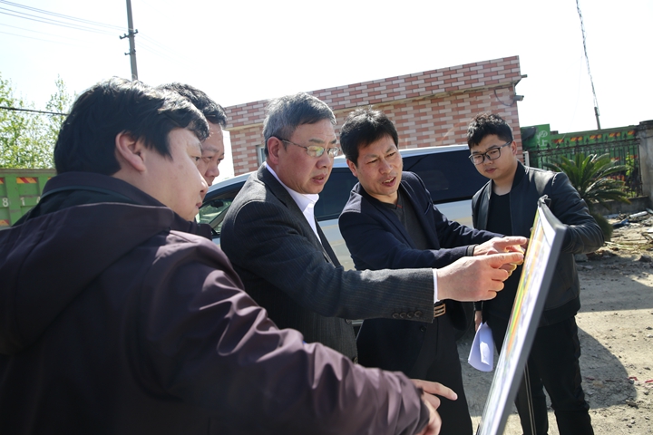 圖為公司領(lǐng)導(dǎo)陳文波在水花村考察停車(chē)區(qū)地塊