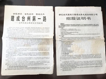 臨近中午的時候,來了一位面目普通的中年人,他準(zhǔn)備了他父親和母親的身份證還有銀行卡,工作人員以為是兩筆代辦業(yè)務(wù),原來是查詢股東紀(jì)錄的,查詢的股東名字叫婁巖奶,因?yàn)閹r奶兩字比較少見,我記得上午的時候辦理過一個叫巖奶的股東的收購業(yè)務(wù),就非常好奇的詢問,這時候管理處的工作人員解釋,他們這里有兩個叫巖奶的人,一個是婁巖奶,一個是宋巖奶,經(jīng)過查詢卻沒有找到婁巖奶的股東信息。據(jù)管理處工作人員回憶,1993年婁巖奶當(dāng)時還未退休,應(yīng)該購買了股票。經(jīng)過查詢管理處的退休人員清冊,發(fā)現(xiàn)婁巖奶于1994年12月才退休,根據(jù)初步判斷估計該股東可能當(dāng)時出于各種原因并沒有購買股票。為了慎重起見,于是工作人員請求管理處把股票購買的原始檔案調(diào)閱出來查看,翻開斑駁的原始記錄,一個一個仔細(xì)查詢股東姓名,但是很遺憾并沒有該股東的信息,工作人員肯定地回復(fù)了股東。雖然讓婁巖奶的兒子失望了,但是工作人員卻在斑駁的檔案中看到了非常珍貴的歷史檔案:《全區(qū)動員、全民參與、苦戰(zhàn)三年、建成臺州第一路—臺州高速公路建設(shè)宣傳提綱》、《浙江臺州高速公路建設(shè)開發(fā)股份有限公司招股說明書》,看著這些檔案,眼睛有些濕潤,仿佛又回到了那個波瀾壯闊的年代,也為高速集團(tuán)曾經(jīng)的創(chuàng)舉而驕傲。