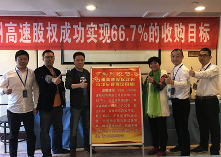 臺州高速股權集中和優化,是深化市屬國有企業改革,優化公司治理結構的迫切需要,也是保護中小股東利益,徹底解決歷史以遺留問題的必然選擇。此次收購目標的完成,為臺州高速集團的發展創造了歷史條件。臺州高速集團以此為契機,圍繞發展謀劃新思路,貫徹落實市委、市政府的決策部署,奮力作為、主動擔當,力爭在完成“三大歷史任務”,參與“綜合交通等基礎設施建設”中發揮重要作用。