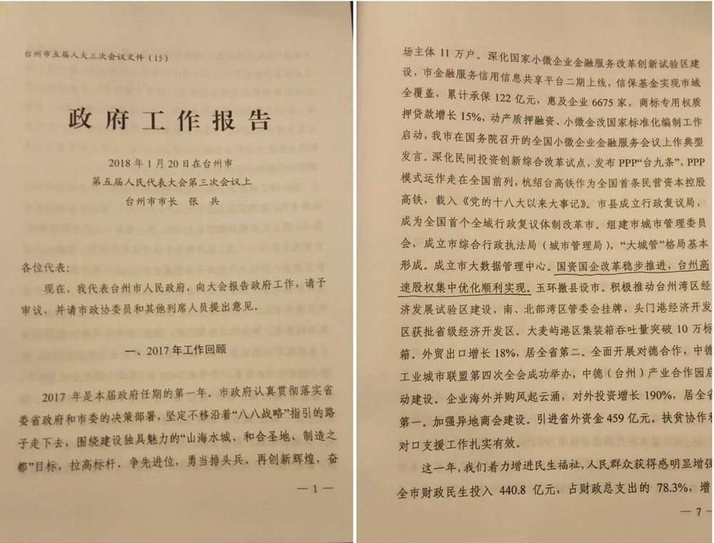 臺(tái)州高速股權(quán)集中優(yōu)化寫(xiě)進(jìn)《政府工作報(bào)告》 |