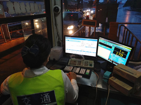 圖為高峰時期的ETC出口車道情況 為保暢通,負責ETC車道的工作人員要時刻盯著過往的車輛,對于ETC操作系統上顯示的誤闖車,他得馬上示意司機停車,用人工操作系統讀卡付費。遇ETC車輛可直接通過,不必停車取下OBU中的ETC卡再人工刷一遍,大大節省了ETC車輛在非正常情況下的通站時間??粗鳨TC車道源源不斷的車流,收費員小孫一邊揉著眼睛一邊說:“操作起來還蠻順手的,就是有的司機開著遠光燈過來,要第一時間辨別車牌號與電腦流水相不相符,眼睛被刺得直冒金星,很痛很吃力?!?/span> 在ETC車道給非ETC車輛增加一個臨時通道的大膽嘗試,一改以往誤闖車輛進入ETC車道后要么引導到旁邊人工車道收費,要么就是先手動放行,再將通行卡拿去人工車道作整車插入操作,不僅需要登記和旁站等手續,又給后方車輛造成不少的等待時間。而現在的一個出口,兩個操作系統,既能在第一時間讓誤闖車輛順利通行,又能保證ETC車輛不用人工刷卡就能正常地快速通過。在飽和狀態下,其通過率較之前提升12%,通行效率顯著提升,有效減少了內廣場擁堵,減輕主線分流壓力。 鄭瑛芝