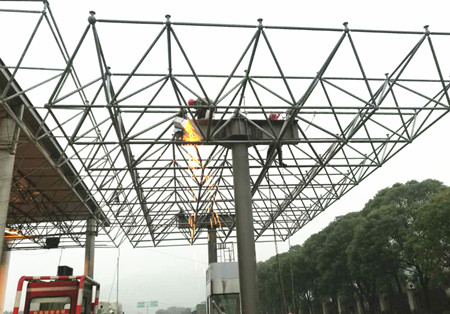 溫嶺西收費站位于大溪鎮(zhèn)大石一級公路起點處,改造前,收費站為四進六出十個車道。因臺州市區(qū)僅有一條南北縱向高速,玉環(huán)市、溫嶺市的車輛都要從溫嶺西這個收費站進出高速,造成該站每日出入車流量巨大。為了有效緩解出口車輛排隊等問題,集團提前謀劃,啟動溫嶺西收費車道拓寬工程。 而這項工程中最重要的就是鋼結(jié)構(gòu)網(wǎng)架吊裝,鋼結(jié)構(gòu)網(wǎng)架長18米,寬9.4米,重達15噸。為了減少集團通行費的損失和保證吊裝過程的安全,工程養(yǎng)護部與施工單位合力研究,專門編制了專項吊裝方案,動用了兩臺25噸吊機。