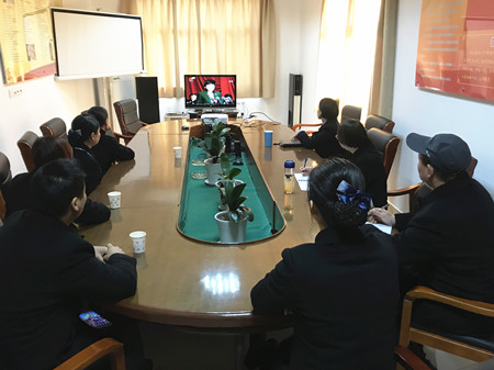 圖為臺州收費所職工收看現場 集團下屬各所、中心、子公司分別組織收看直播。 陳林偉