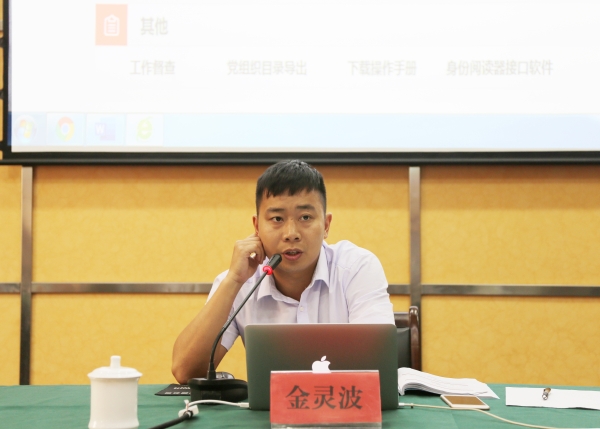 圖為金靈波講解全國黨員管理信息系統實操 下半場培訓由臺州市國資委團工委書記金靈波為大家講解全國黨員管理信息系統實操。金靈波從系統模塊分類開始講述,之后延伸到黨建工作的密切聯系,深入淺出,講一塊通一塊。培訓前,各支部落實了黨建系統管理專員,參培人員均佩帶了手提電腦,現場邊學習邊實操,大家認真聽講,仔細記錄,現場實操,取得了很好的學習效果。 整個培訓,氣氛活躍,提問積極,交流互動效果顯著。培訓結束后,參培人員紛紛表示,此次培訓非常接地氣,有立竿見影的效果,學到了許多知識,非常實用。 徐夢燁