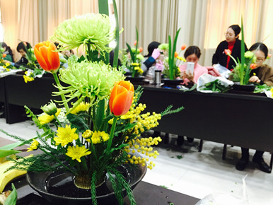 公司“三八”婦女節(jié)開展插花活動 3月8日下午,公司47名女員工歡聚一堂,開展了一次具有古樸風(fēng)韻的插花活動?;顒友埩酥袊寤ɑㄋ噮f(xié)會理事、臺州市花藝文化研究會會長蘇群老師作指導(dǎo)。